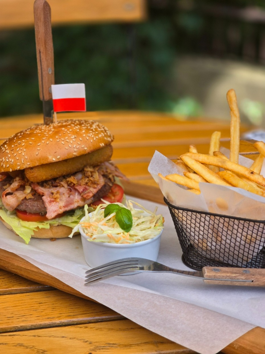 1. Burger brytyjski + frytki 100g