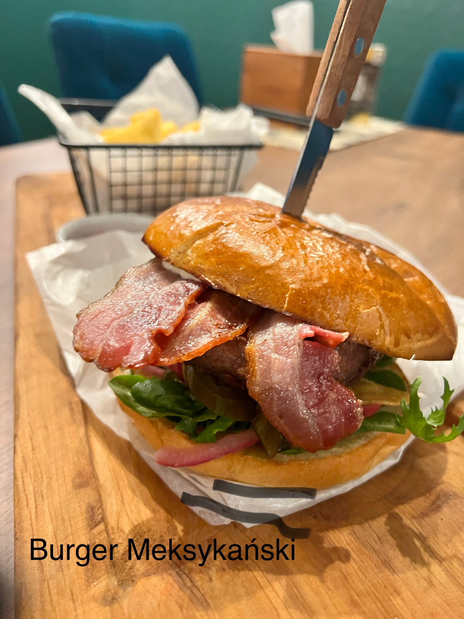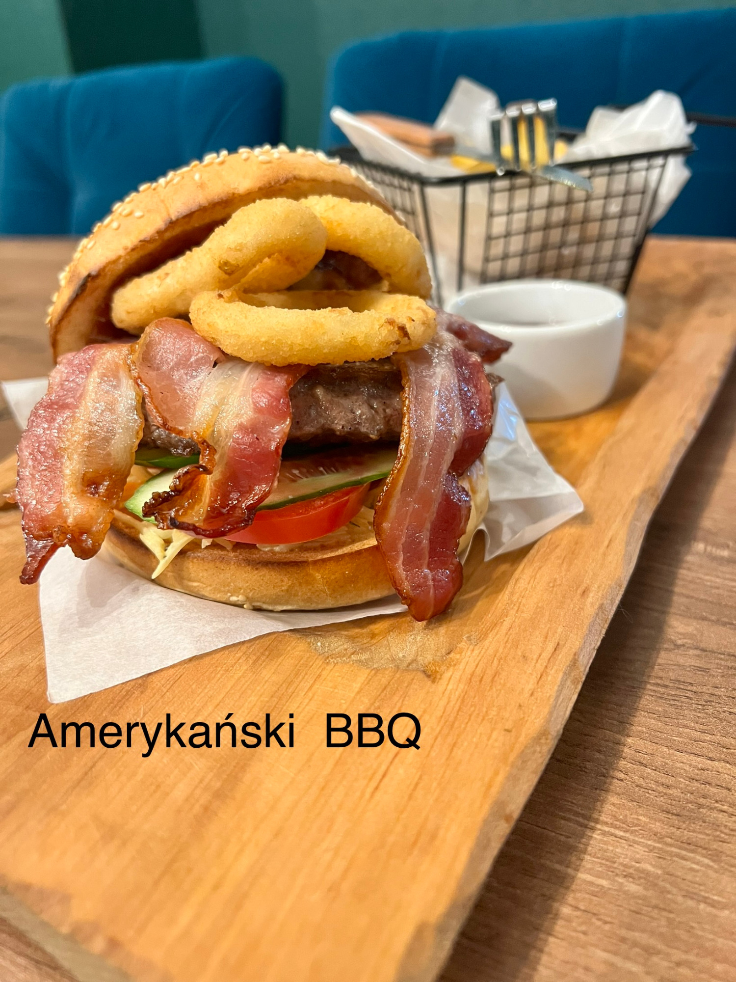 ziemniaki, mozzarella, sałatka szwedzka, cebula, boczek, sos -