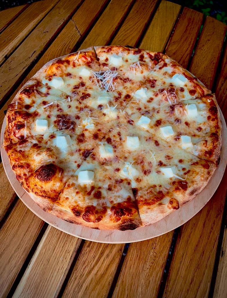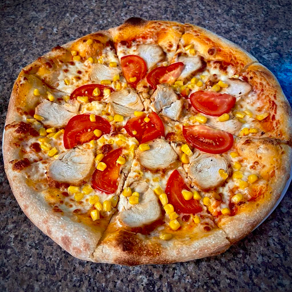 Pizza Hawajska jest słodka i delikatna, dzięki połączeniu sosu pelati i ananasa. Na górze znajduje się świeża mozzarella, która nadaje pizzy dodatkowej delikatności. Kurczak i kukurydza dodają pizzy dodatkowej tekstury i smaku, tworząc harmonijne i smaczne połączenie składników. Ta pizza jest doskonałym wyborem dla tych, którzy lubią słodko-delikatne smaki.
