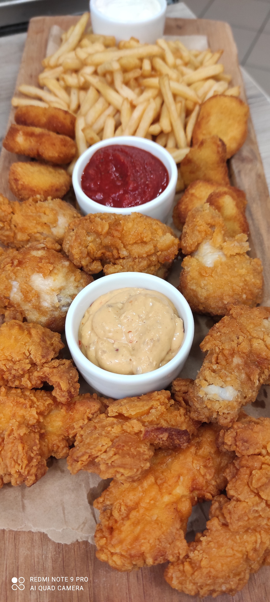 6. Mega zestaw duży (400g stripsów, 14 nuggetsów, 10 chicken wings, 20 krążków cebulowych, 400g frytek, 3 sosy