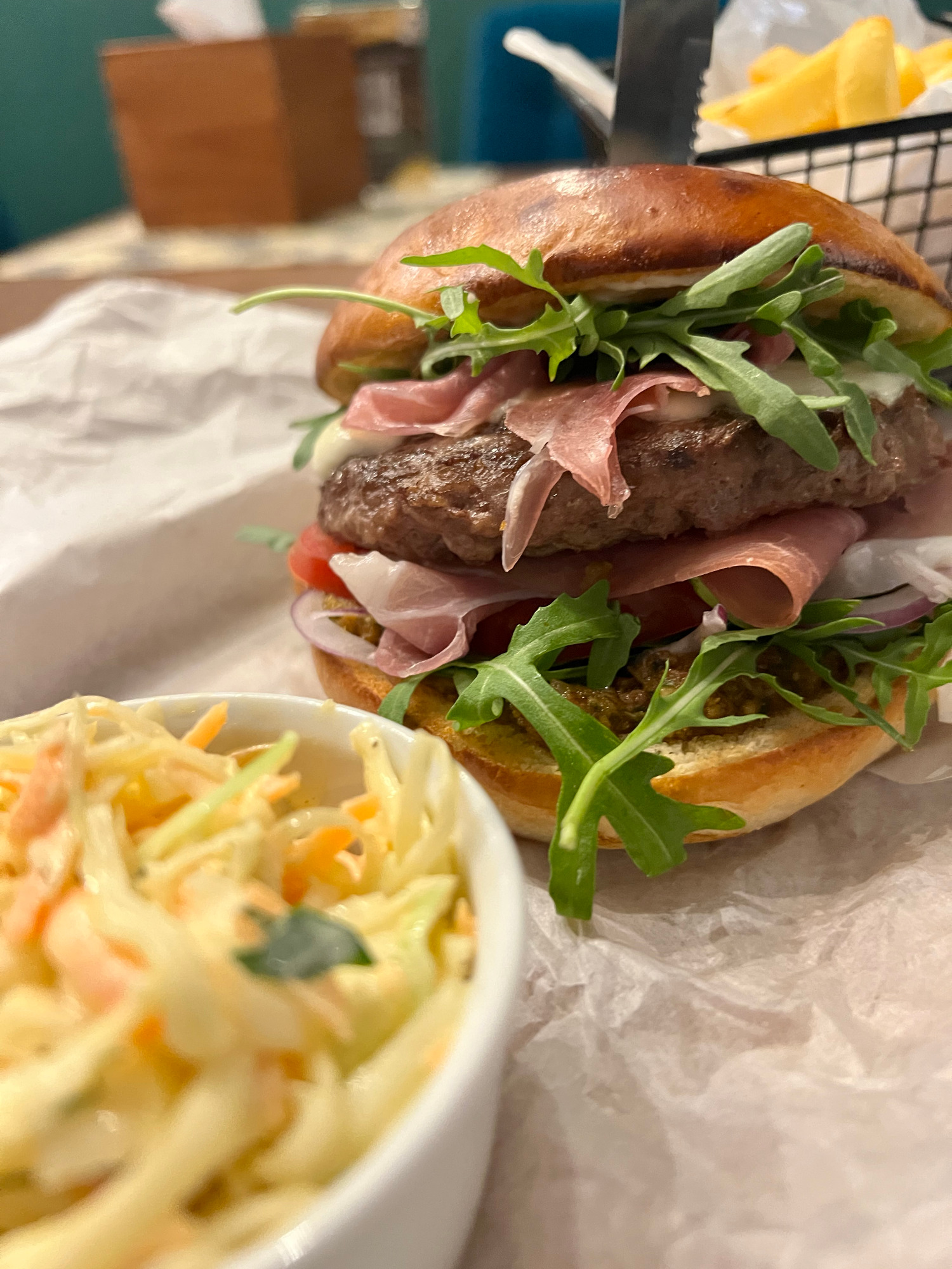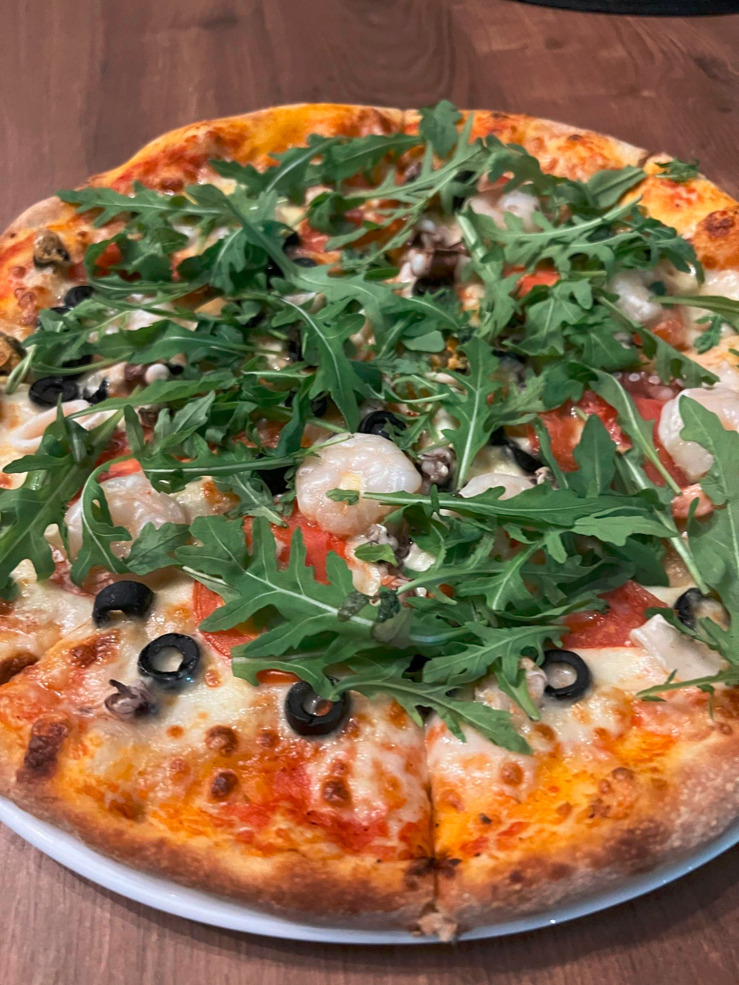 sos pelati (bazowy), mozzarella, grana padano, pomidor, oliwki, rukola, szynka parmeńska14. Diabelska